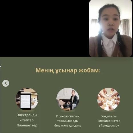 "Жас Ұлан" біріңғай балалар мен жасөспірімдер ұйымының басшысы аға тәлімгер Сүлеймен Ұ.Қ. ұйымдастыруымен "Мен мектеп кеңесінің басшымын" тақырыбындағы жоба сайысы өткізілді. Жобада