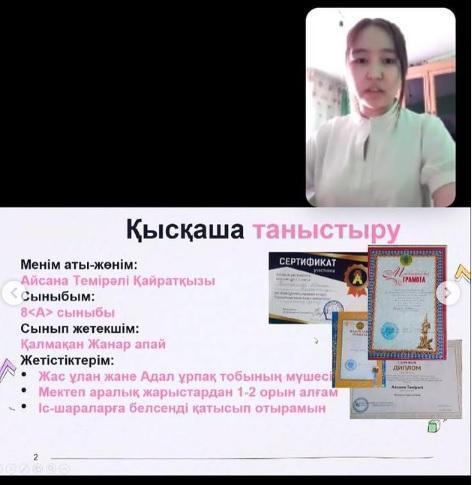 8 "Ә" сынып оқушысы Қанатбекова Жанель "Мектеп кеңесінің басшысы" номинациясына ие болып марапатталды.Құттықтаймыз!!!