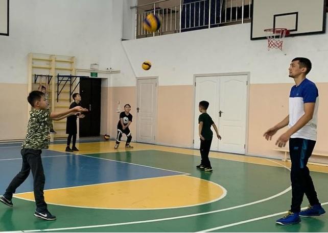 Мектебіміздегі волейбол секциясының жетекшісі «Қазақстан Республикасының спорт шеберлігіне үміткер» Қайрат Айдос. Секцияға 35 оқушы қатысады.