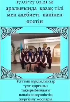 17.02-27.02.2021 ж аралығында қазақ тілі мен әдебиет пәнінен өтетін Ұлттық құндылықтар “ұлт қорғаны" тақырыбындағы пәндік онкүндіктің жүргізілу жоспары